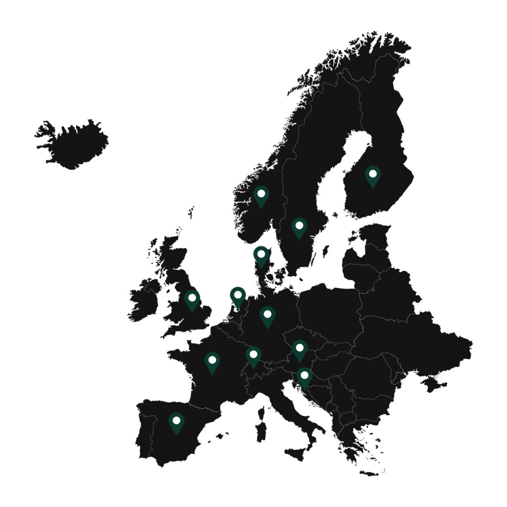 Austria, Denmark, Croatia, Finland, France, Germany, Netherlands, Norway, Spain, Sweden, Switzerland and United Kingdom